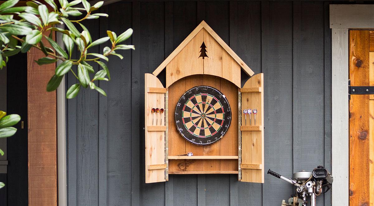 This dartboard cabinet is the perfect recreational accessory for game rooms, man caves and cottages.